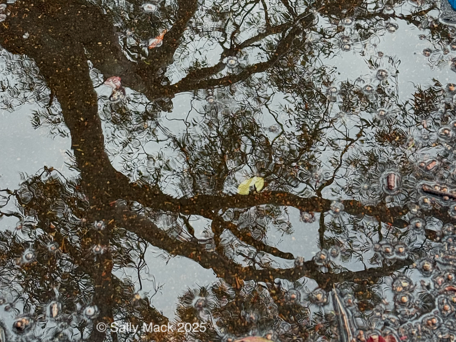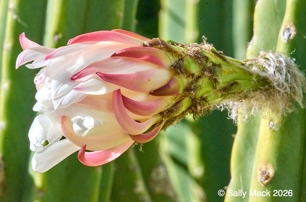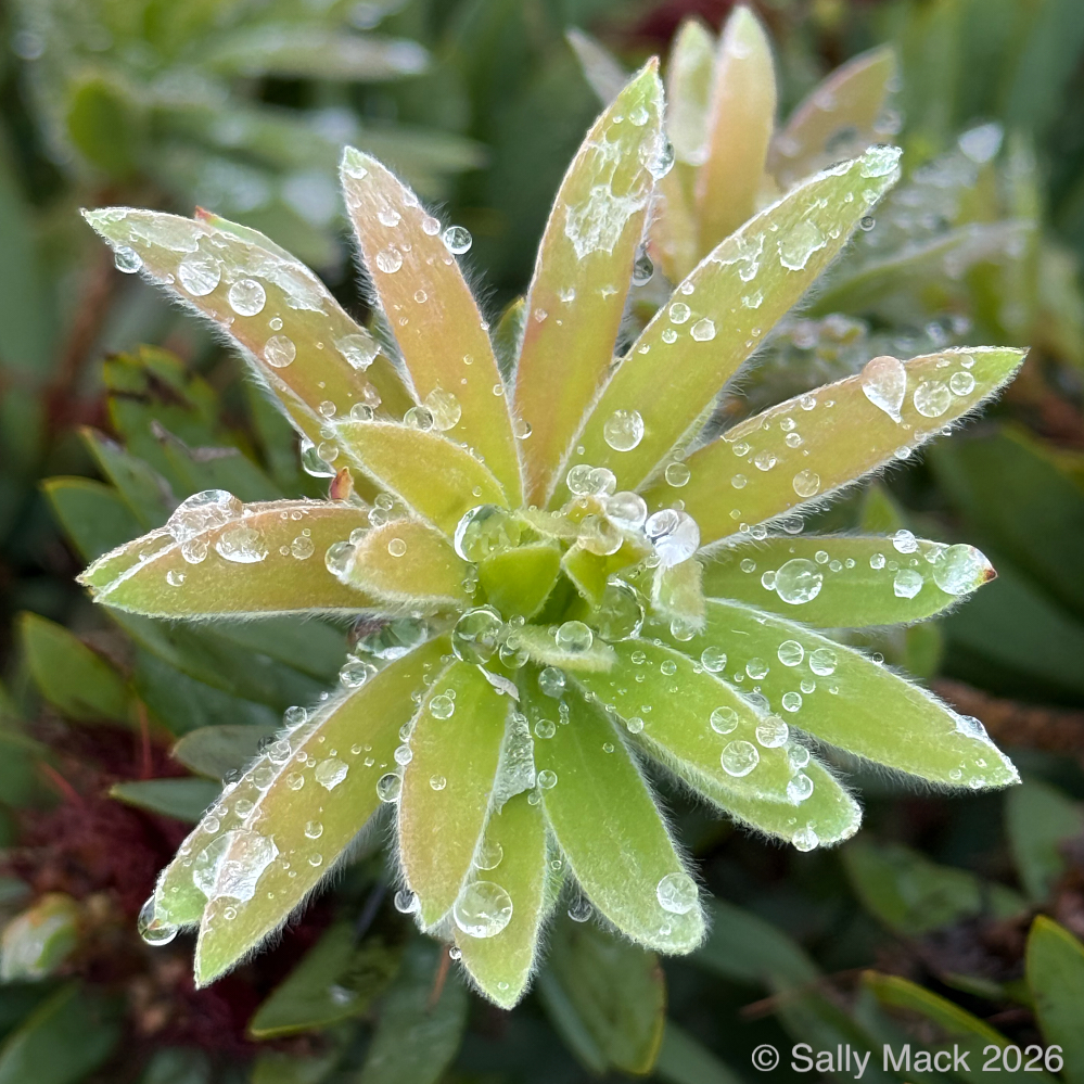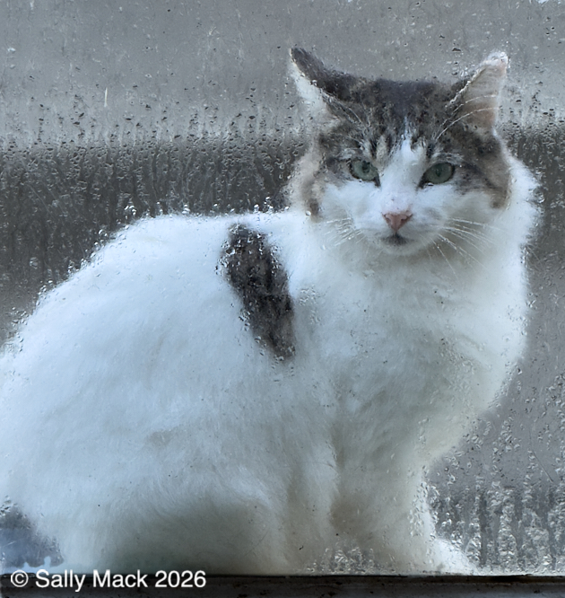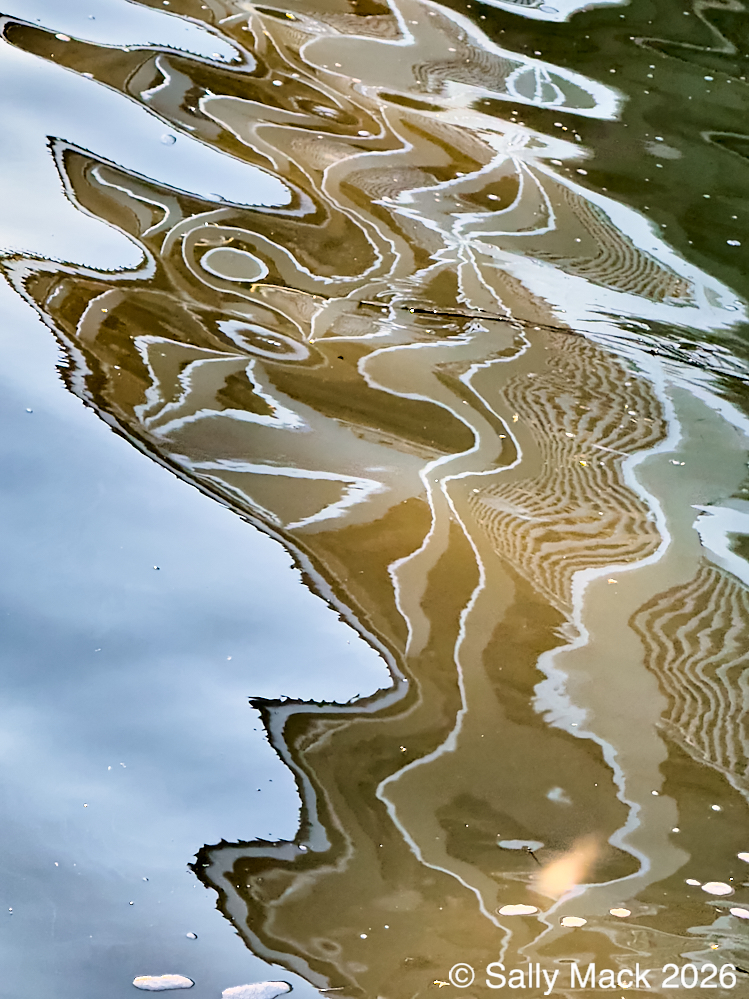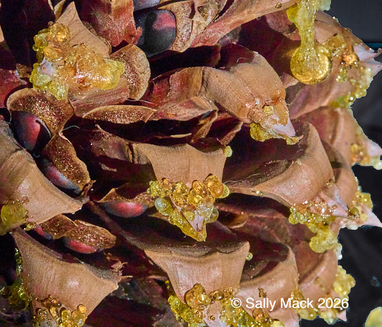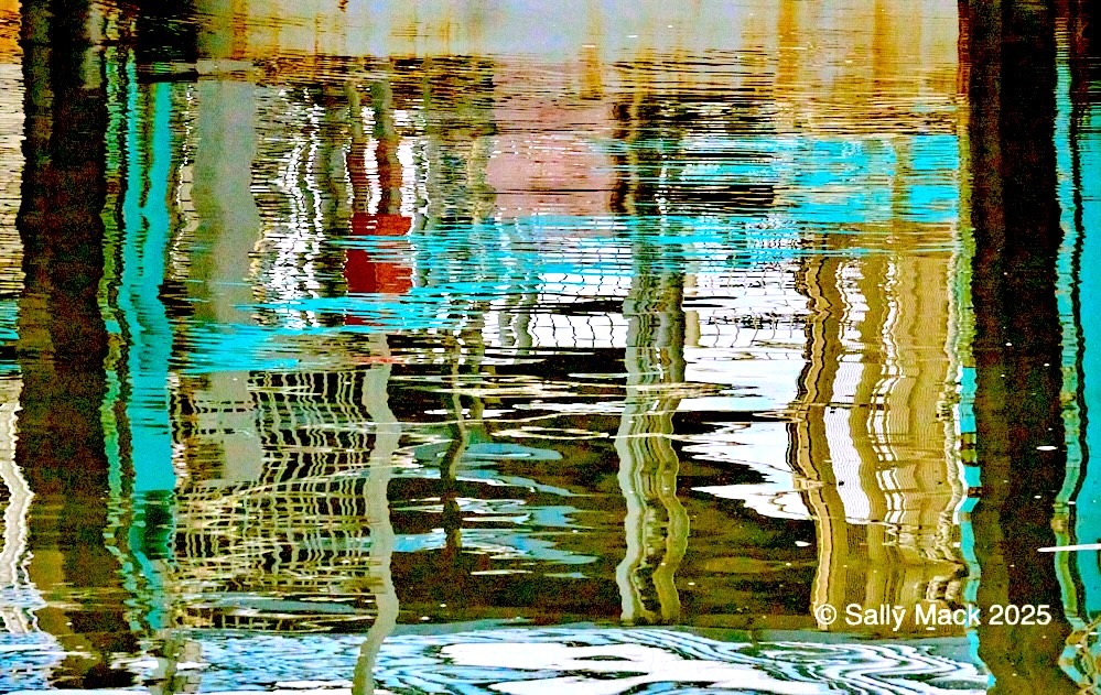 Steel I-beams with shear studs in front of white shrink-wrapped tiny house on weedy lot, Mare Island CA